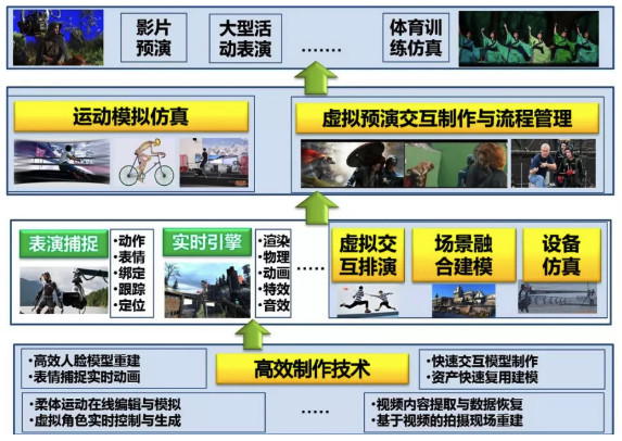 如北京電影學(xué)院未來(lái)影像高精尖創(chuàng)新中心(AICFVE)采用大規(guī)模、大范圍外景的快速獲取與資產(chǎn)生成、多人VR協(xié)同創(chuàng)意環(huán)境與交互、多人光混動(dòng)捕混合現(xiàn)實(shí)、數(shù)字排演、演出場(chǎng)景建模與設(shè)備參數(shù)仿真等智能化虛擬預(yù)演技術(shù)為電影《鼠膽英雄》進(jìn)行了全篇預(yù)演,提升了電影制作的效率和質(zhì)量。