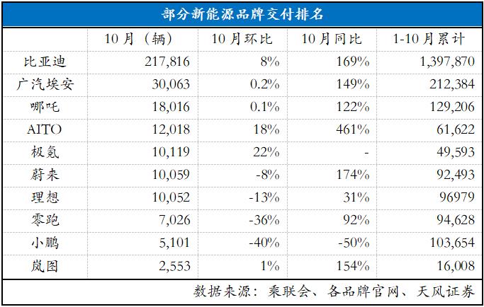 數據來源:乘聯會、各品牌官網、天風證券、蓋世汽車、華福證券、湘財證券、證券日報
