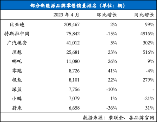 部分新能源品牌具體零售銷(xiāo)量如下: