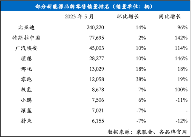 部分新能源品牌具體零售銷量如下: