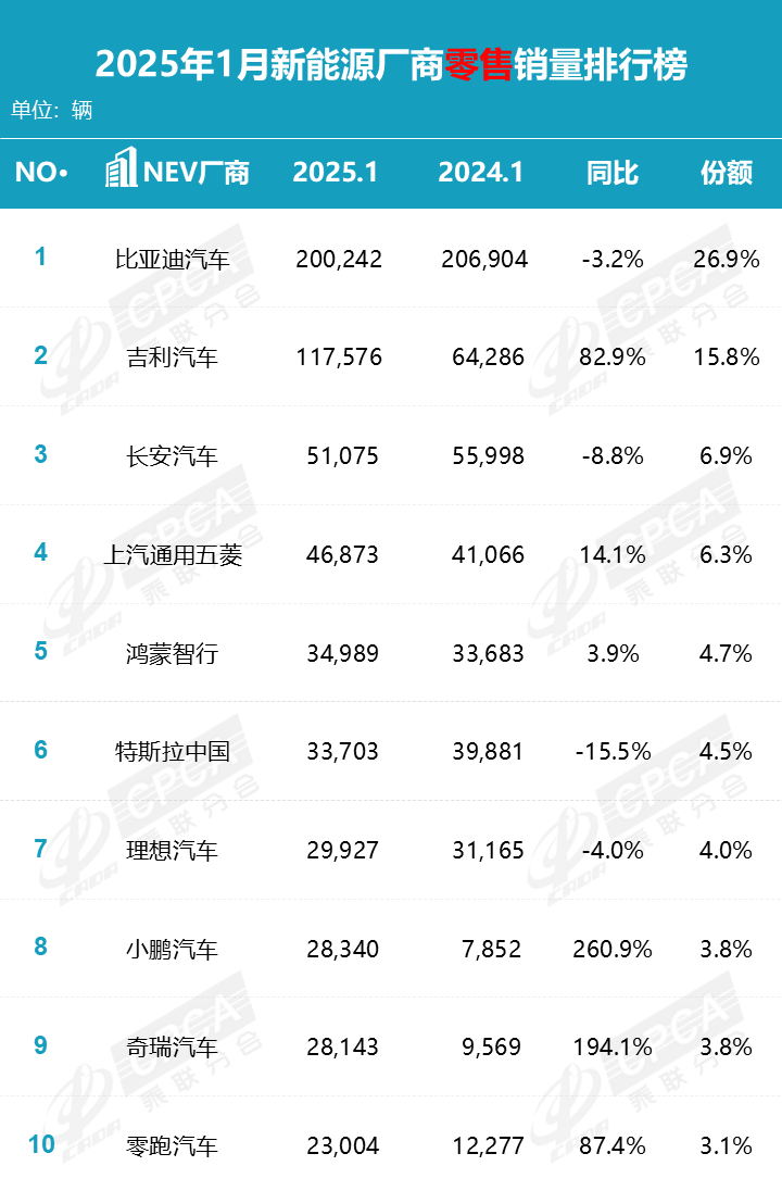 部分新能源廠商具體零售銷量如下